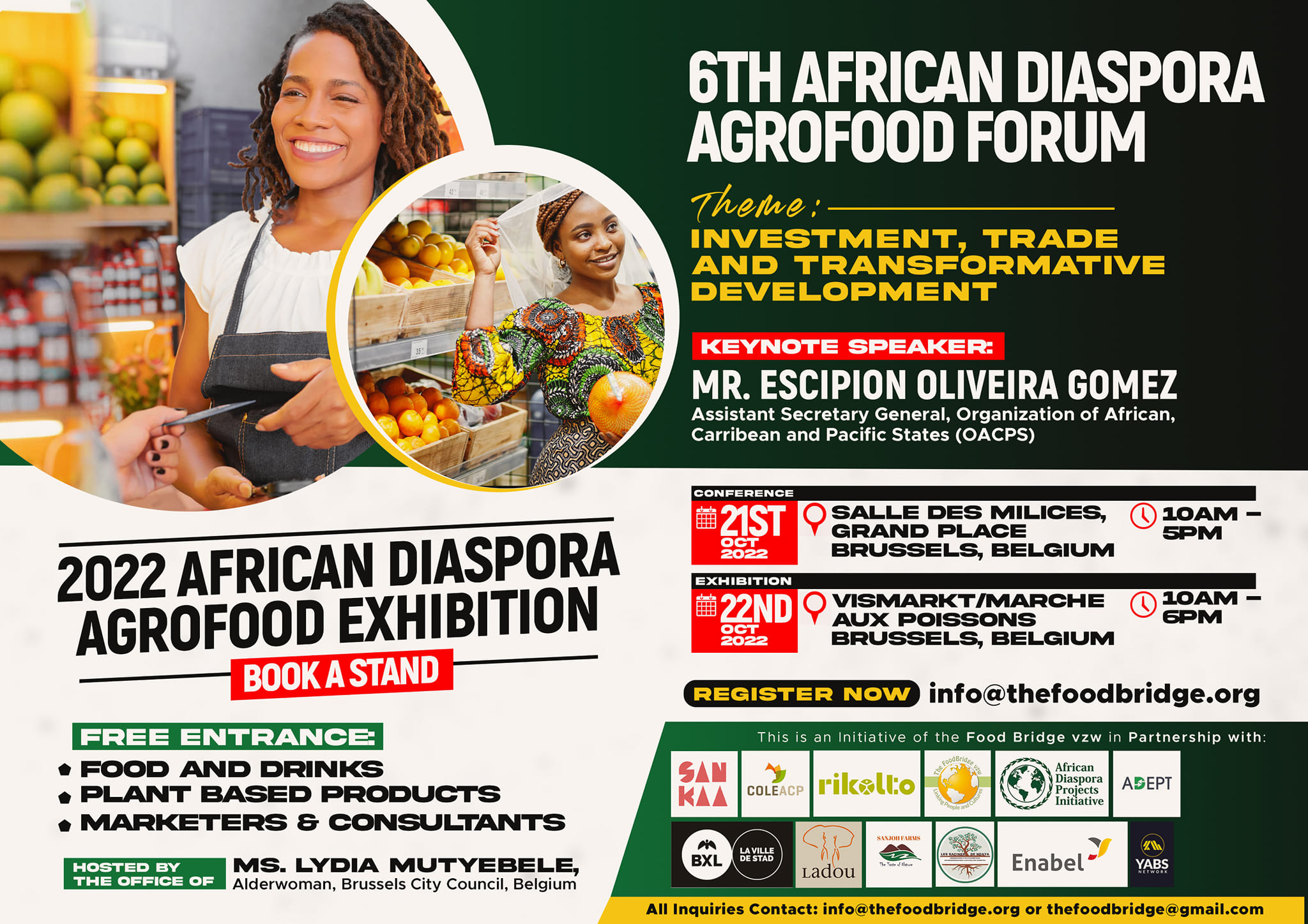 The Food Bridge is happy to announce that the 2022 African Diaspora Agrofood Forum, will be held at 'Salle des milices, Grand Place' Brussels Belgium, from 21st to 22nd of October 2022.